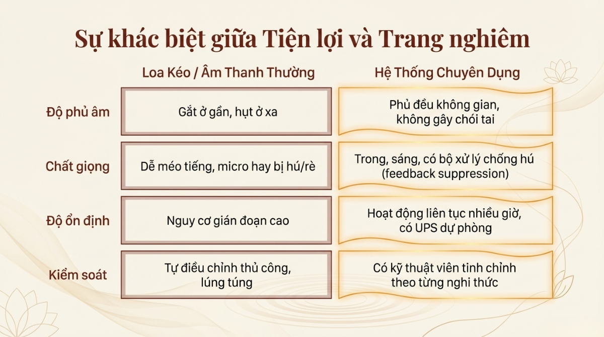 Từ góc nhìn của huyenso.net, việc đầu tư đúng vào âm thanh chính là cách thể hiện sự tôn kính đối với nghi lễ và những giá trị tâm linh sâu sắc.