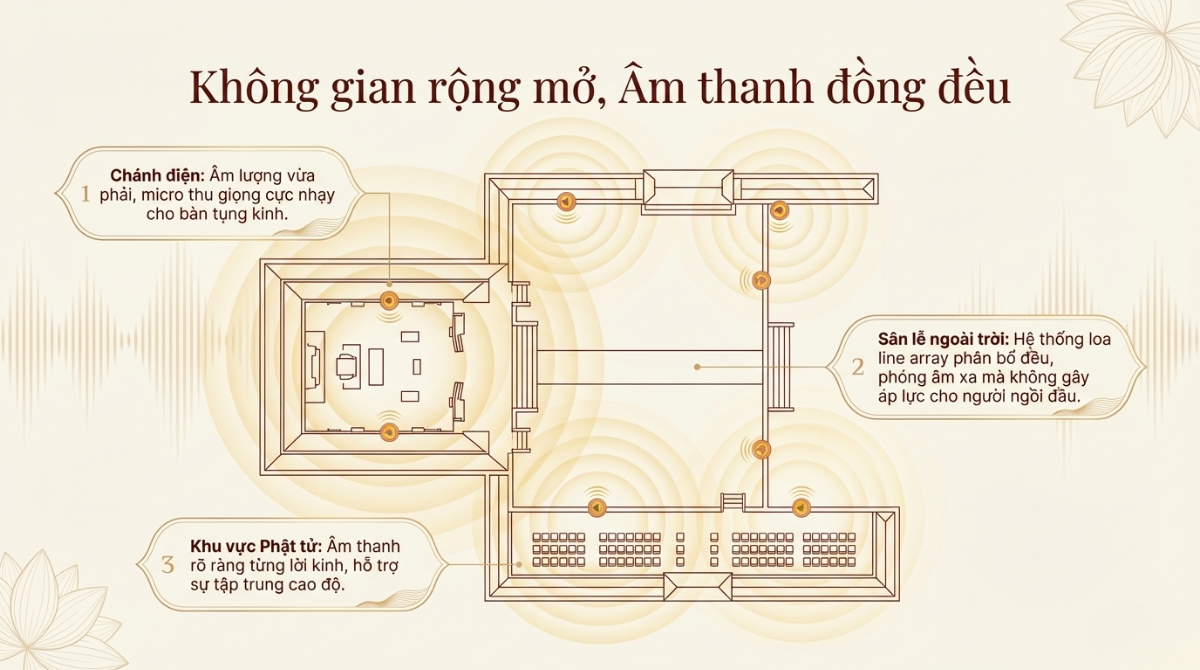 Âm thanh không phủ đều không gian chùa