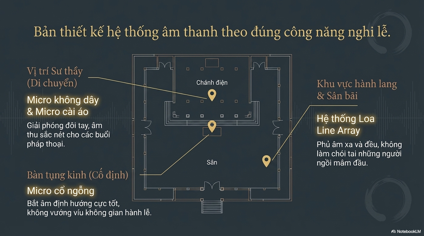 Trong nghi lễ tâm linh, sự chính xác và ổn định là yếu tố quan trọng. Một sự cố âm thanh nhỏ cũng có thể làm gián đoạn dòng chảy của buổi lễ.